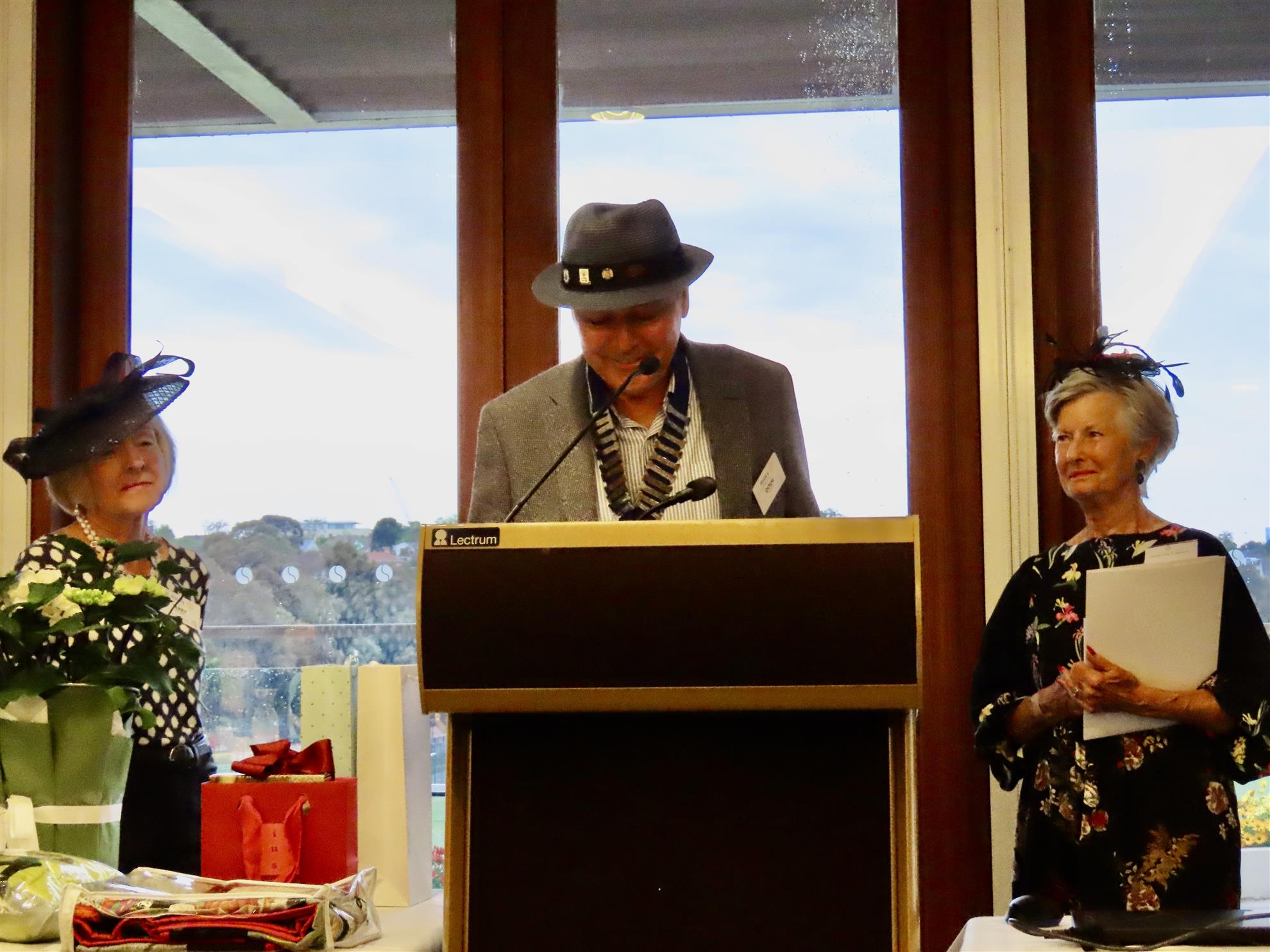 The meeting today was our annual Hat Day lunch with a raffle and prizes for best hats. The prize for the best man’s hat was won by Gilbert Habla and best lady’s hat by Susie Anderson. Proceeds from the raffle will be donated to Rotary Health and a big thank you to Charlotte England, Anne Scott and Kim D’Arcy for their raffle prize gifts.
