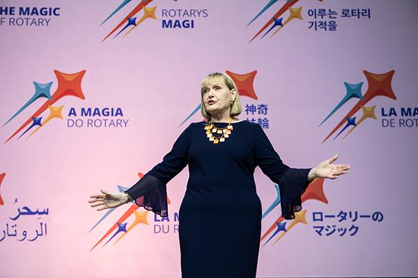 Rotary International President-elect Stephanie Urchick announced the 2024-25 theme, The Magic of Rotary, at the International Assembly on 8 January. The assembly is Rotary’s annual learning event for incoming governors and leaders. Urchick, a member of the Rotary Club of McMurray, Pennsylvania, USA, called on members to use the magic of Rotary to recognize and amplify the organization’s power to save lives. She also called on them to make their Rotary clubs “simply irresistible.”