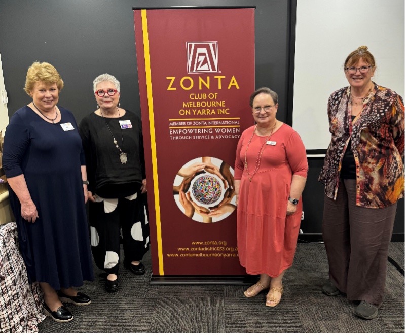 I greatly appreciated the company of our newest member, Min Bell when I was invited to present Rotary SAFE Families at the incredible Zonta on the Yarra Melbourne Club.Forty professional and business women of all ages and the fellowship and energy at Amora Hotel, Richmond was fantastic.It was an eye-opener to both Min and me how these Zonta members are so energetic, focused and generous in making a difference to so many disadvantaged communities.They also make time for much socialising and family events.Zonta is 103 years old and commenced in the USA with Zonta Clubs throughout the world.
