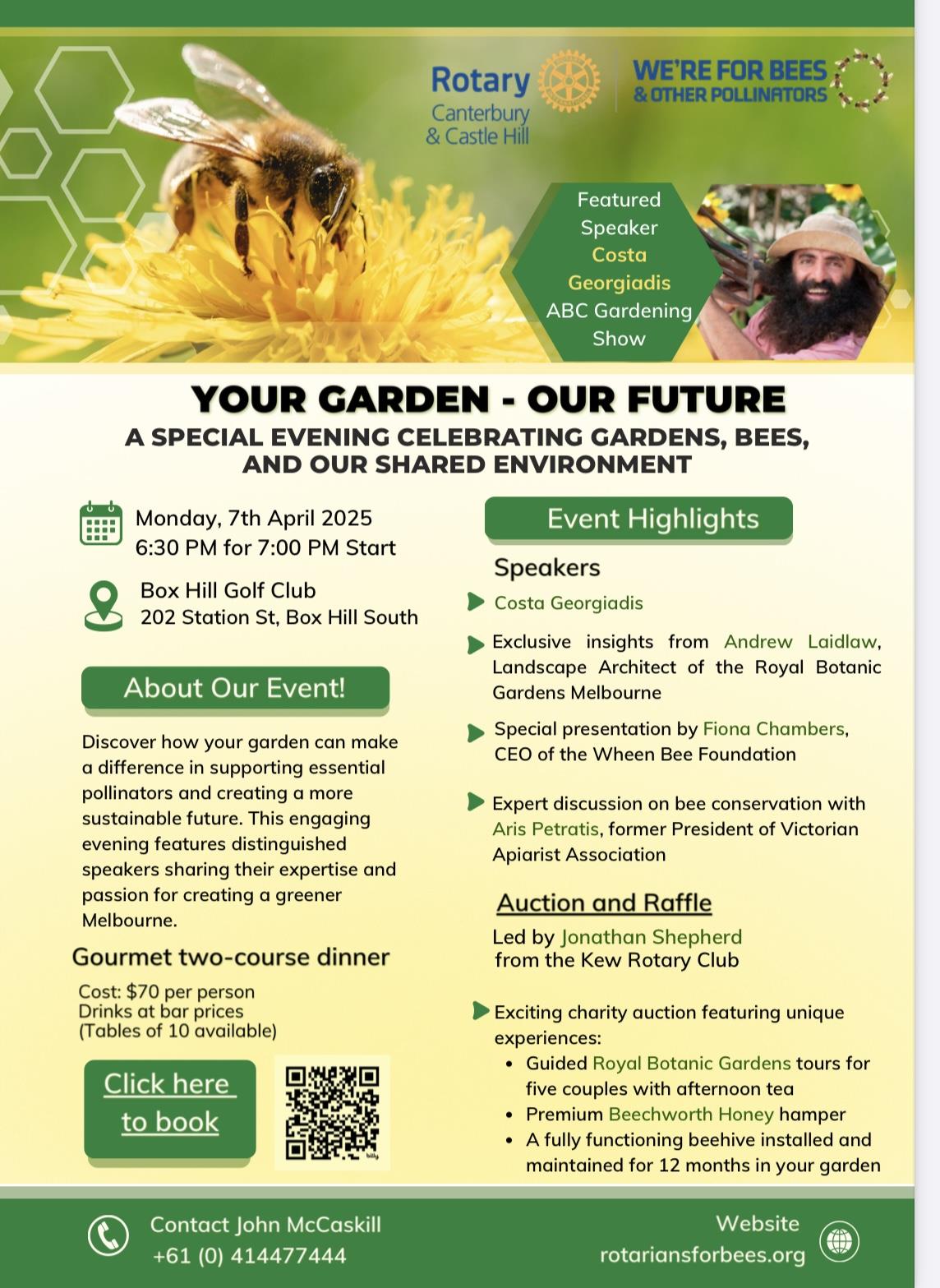 Our Changeover Dinner will be a 'not to miss' event when we celebrate Ian Bentley as our President 2025-26 – Please diarise this date!
