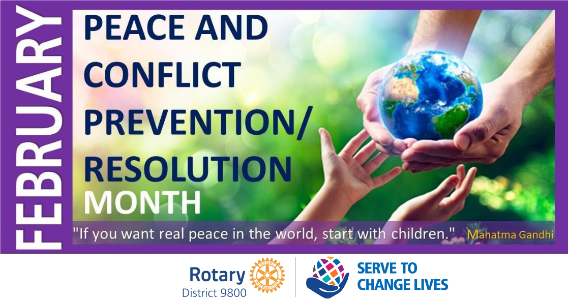 Dedicated to Peacebuilding and Conflict Resolution, highlighting the goal of world understanding and peace, marked by the anniversary of Rotary's founding on February 23, 1905, often celebrated with special events like the Presidential Peace Conference. It's a time for clubs to focus programs on goodwill and peace, linking to Rotary's core mission.